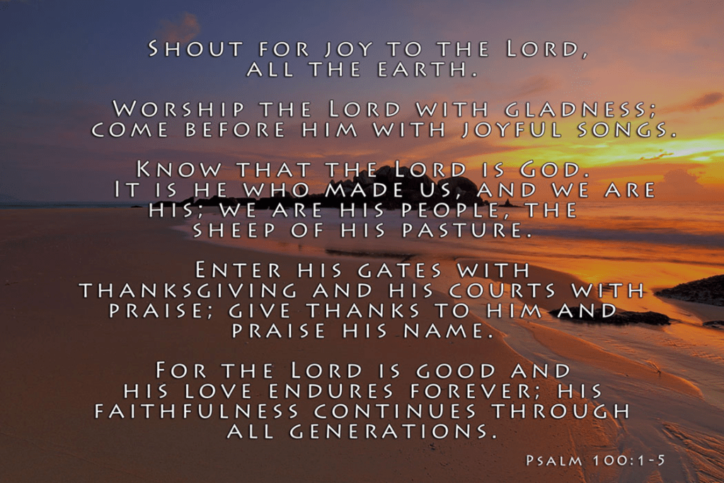 Song and praise, thanksgiving (praise, ‘give thanks’), instrumental music, and loud acclamation (shout for joy, ‘with a loud shout’)—all make their contribution to a fitting response to the Lord from those who are right with him (righteous) in heart and upright before him in life.
